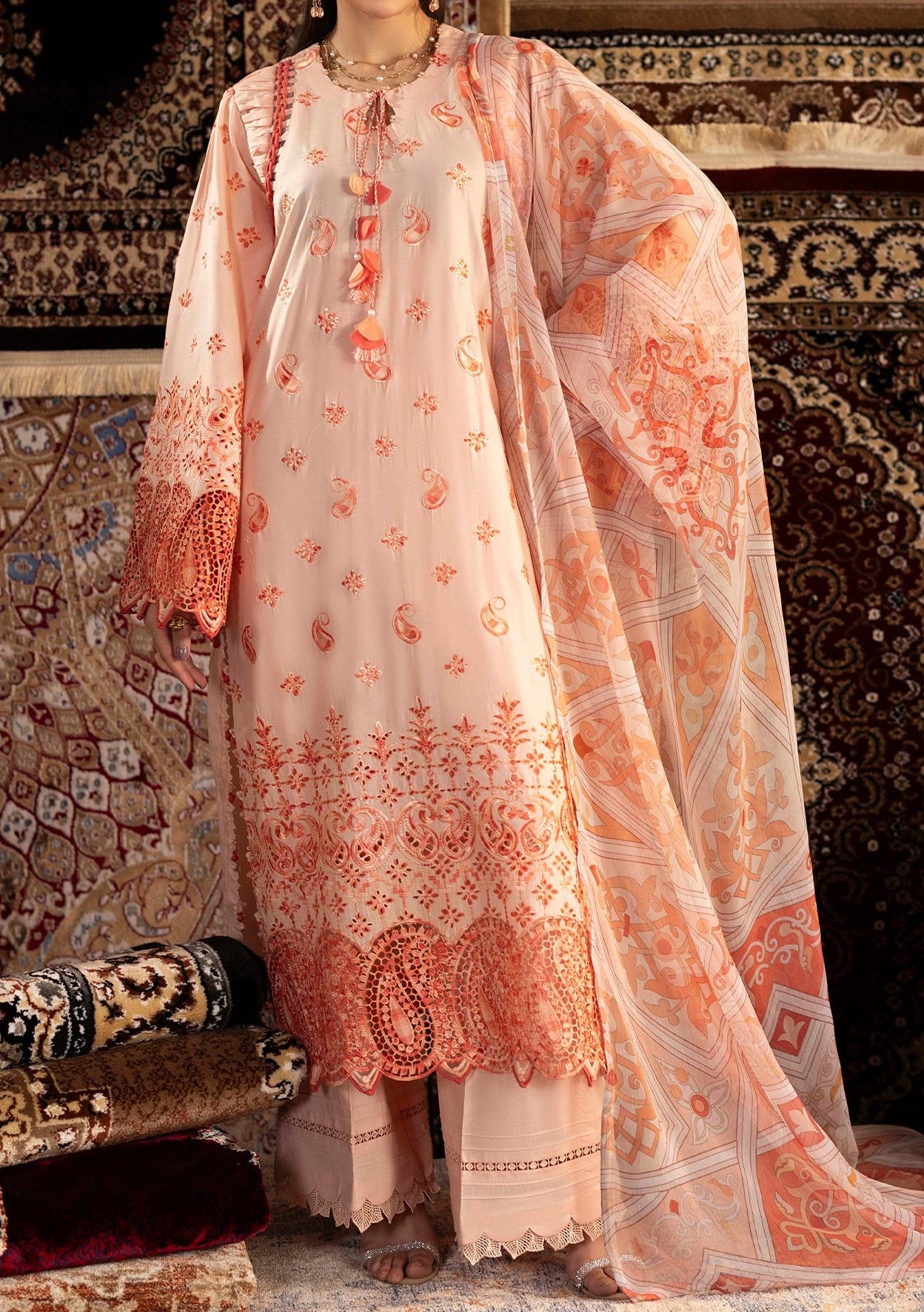 100% Original Pakistani Branded Dresses. Now You Can Customize Your Sizes For Free. Exclusively Tailored With Hand Picked Tassels and Accessories Same As The Model.