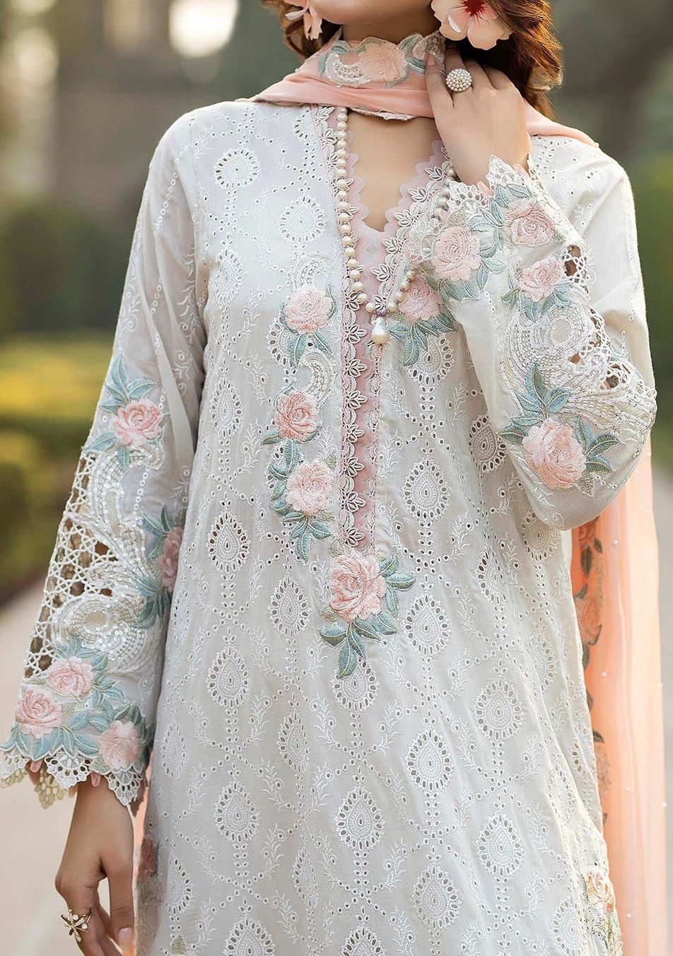 - Schiffli Embroidered Lawn Sleeves