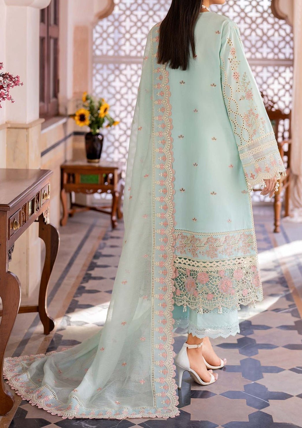 Fabric: Lawn Top, Organza Dupatta, Solid Dyed Trouser.