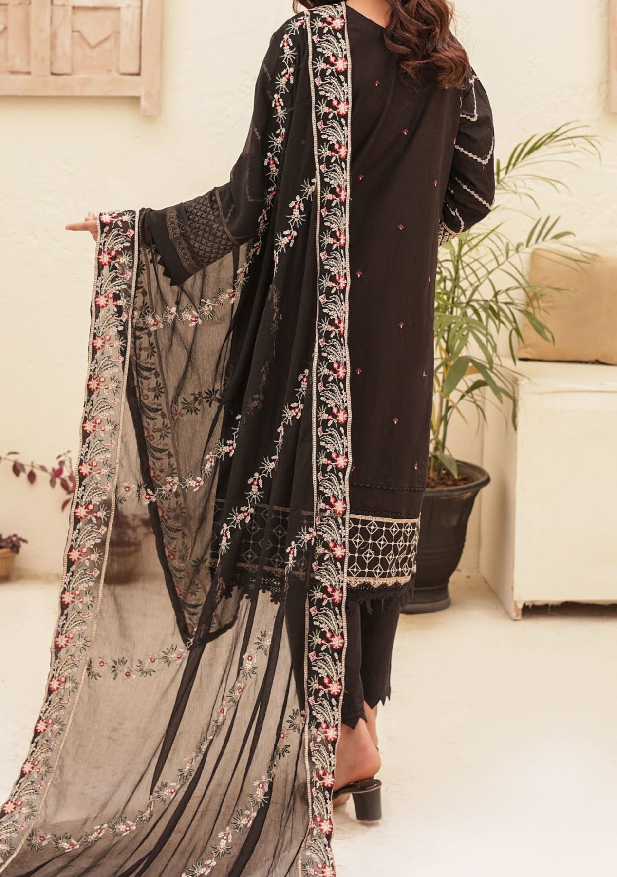 • Ready to Wear Embroidered Chiffon Dupatta .