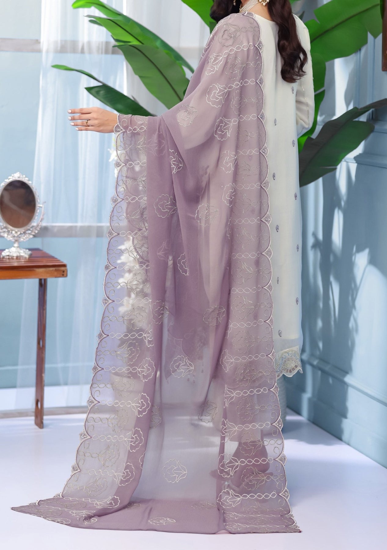 • Embroidered Chiffon Dupatta With Border Work.