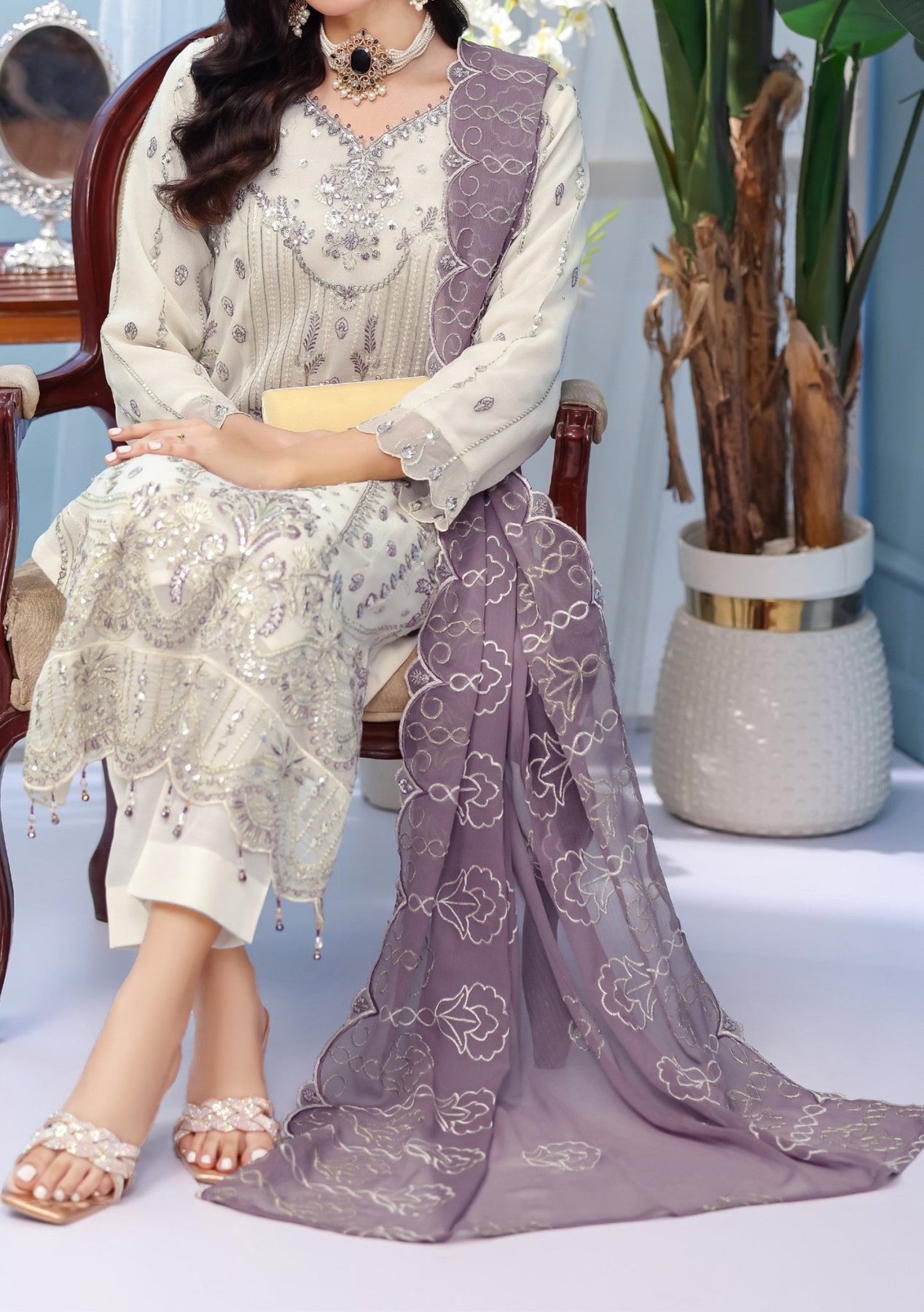 • Chiffon Embroidered Handwork Kameez.
