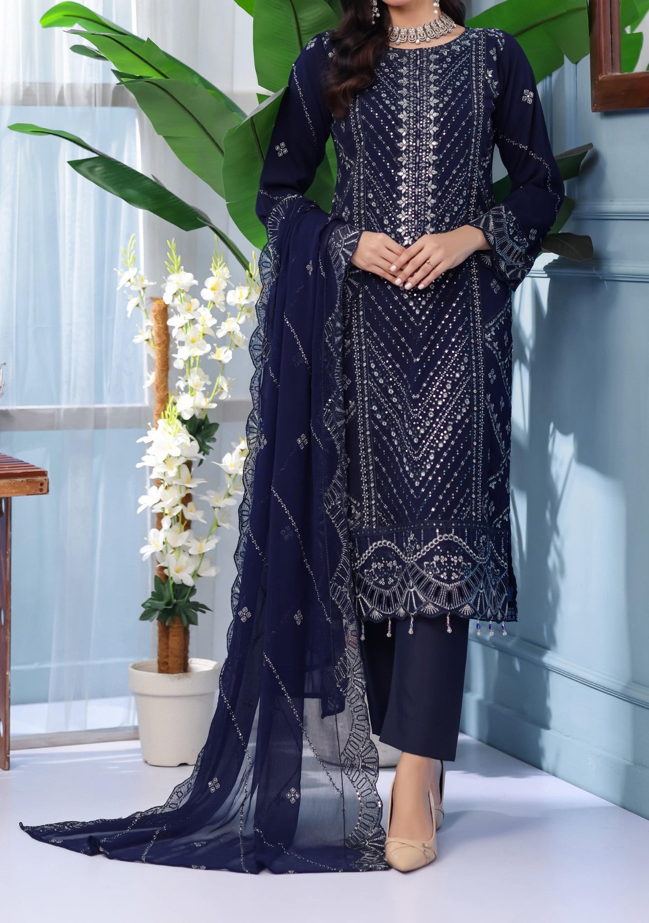 Includes: Ready-Made Kameez, Trouser, Dupatta.