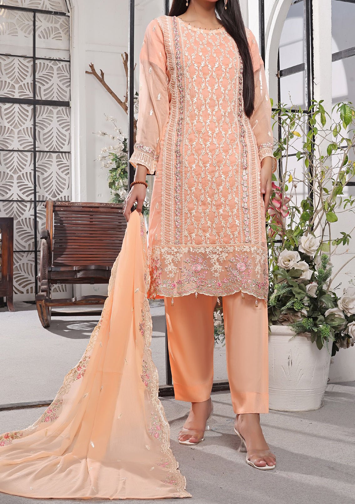 - Chiffon Embroidered Handwork Kameez.