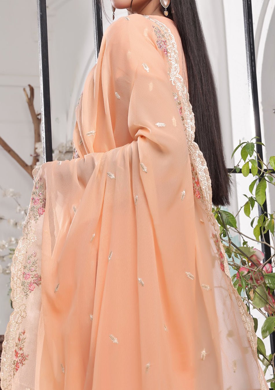 - Embroidered Chiffon Dupatta With Four-Sided Border Work.