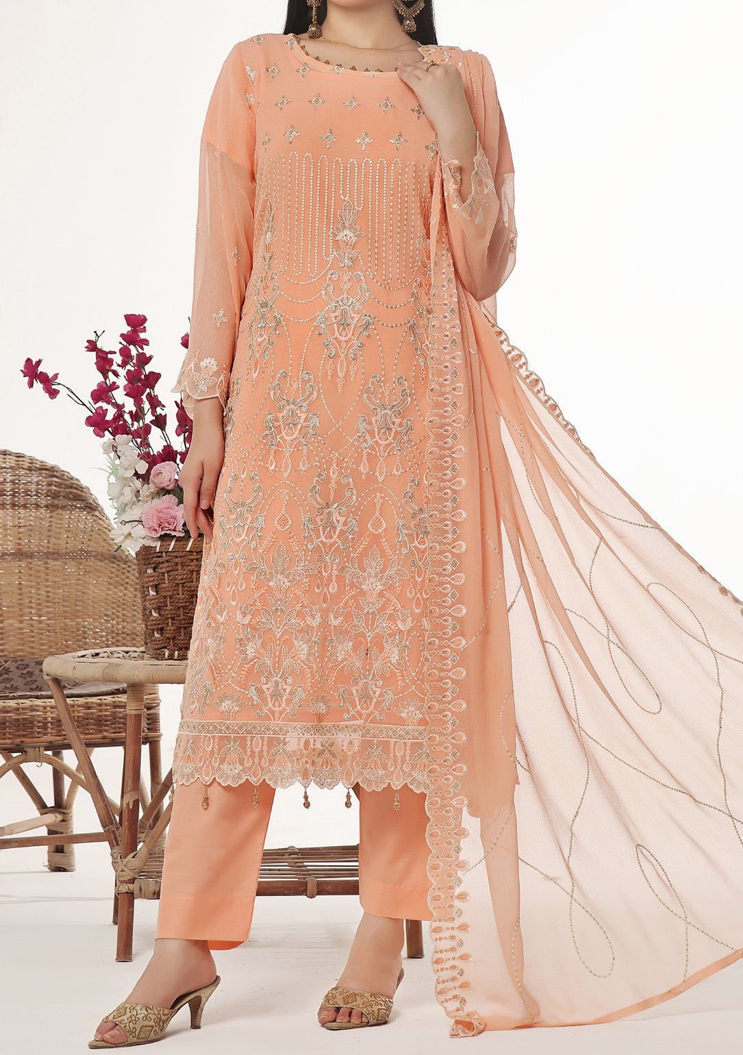 - Chiffon Embroidered Handwork Kameez.