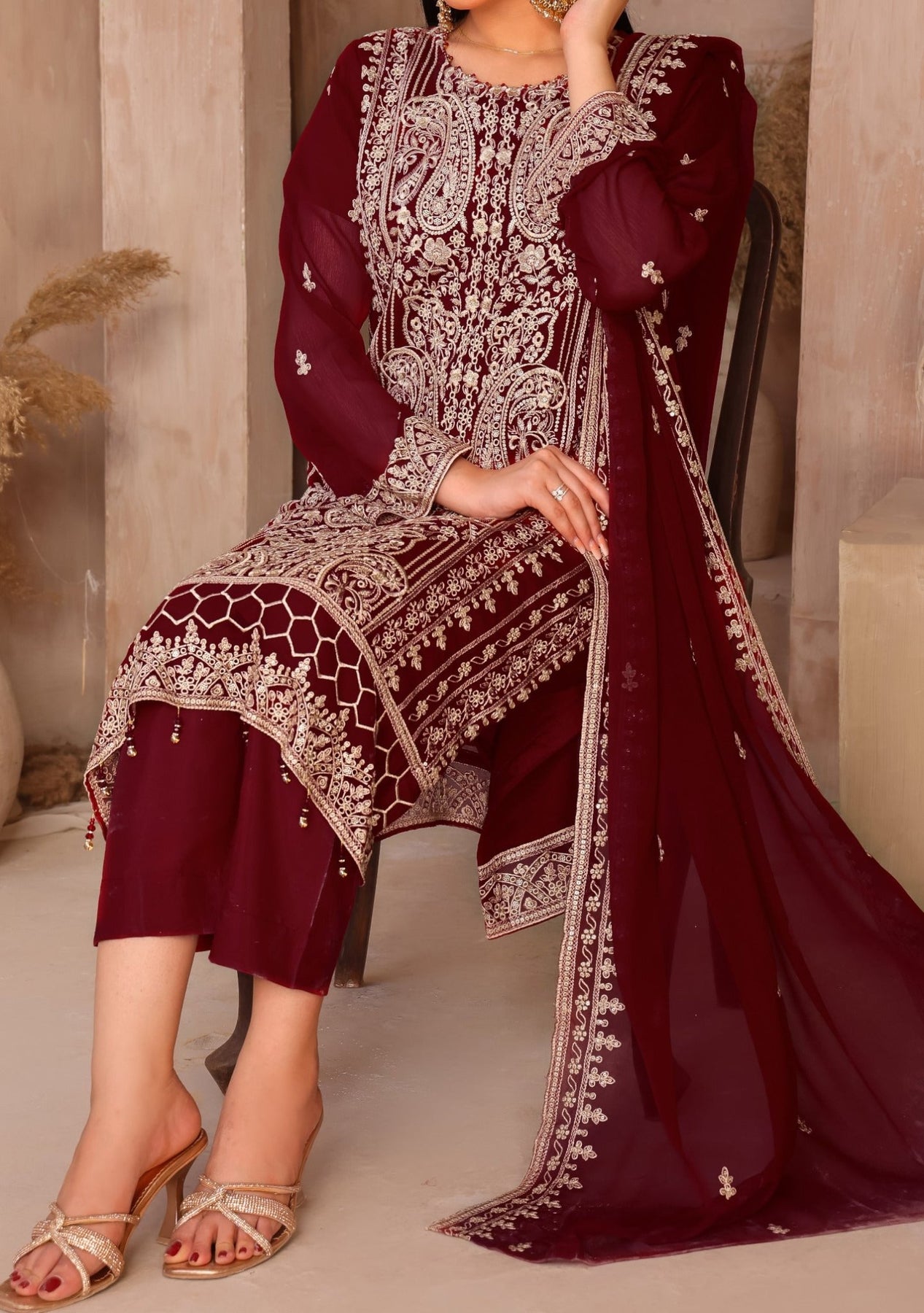 Includes: Ready-Made Kameez, Trouser, Dupatta.