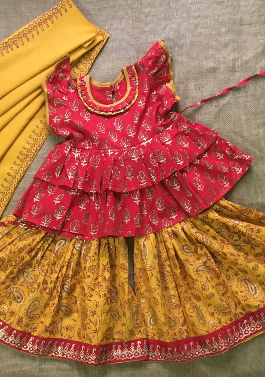 Includes: Top Kameez, Sharara and Dupatta.