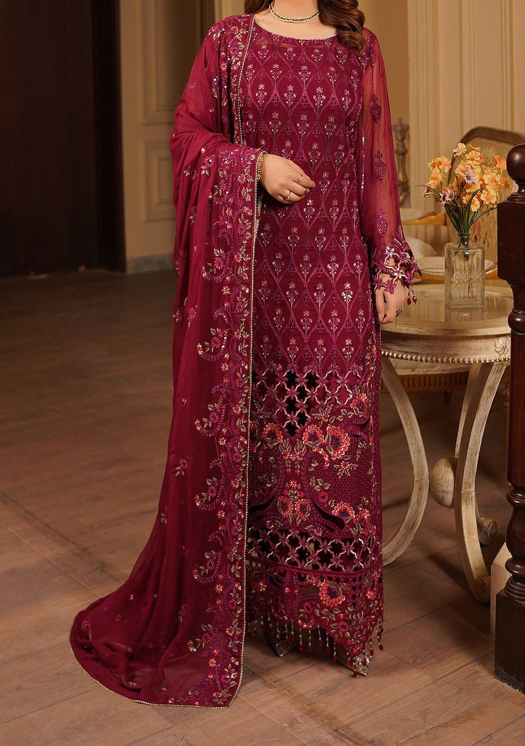 Introducing our Luxury collection "Aarzu Vol 5" by Maryam's Designed to make you look and feel your best, these pieces will add a touch of class and elegance to your wardrobe. This collection is a beautiful collection of ensembles offering versatile compositions for the latest festive wardrobe requirements.